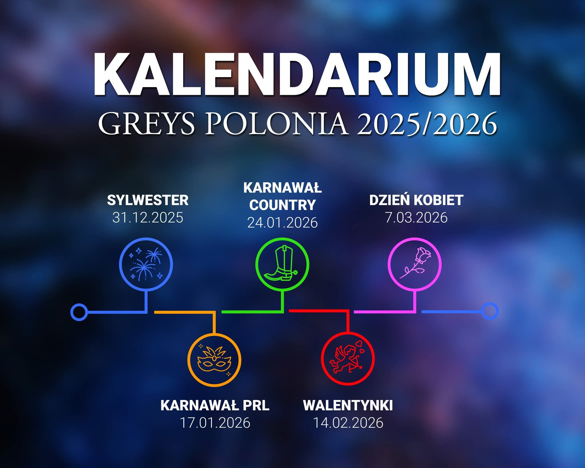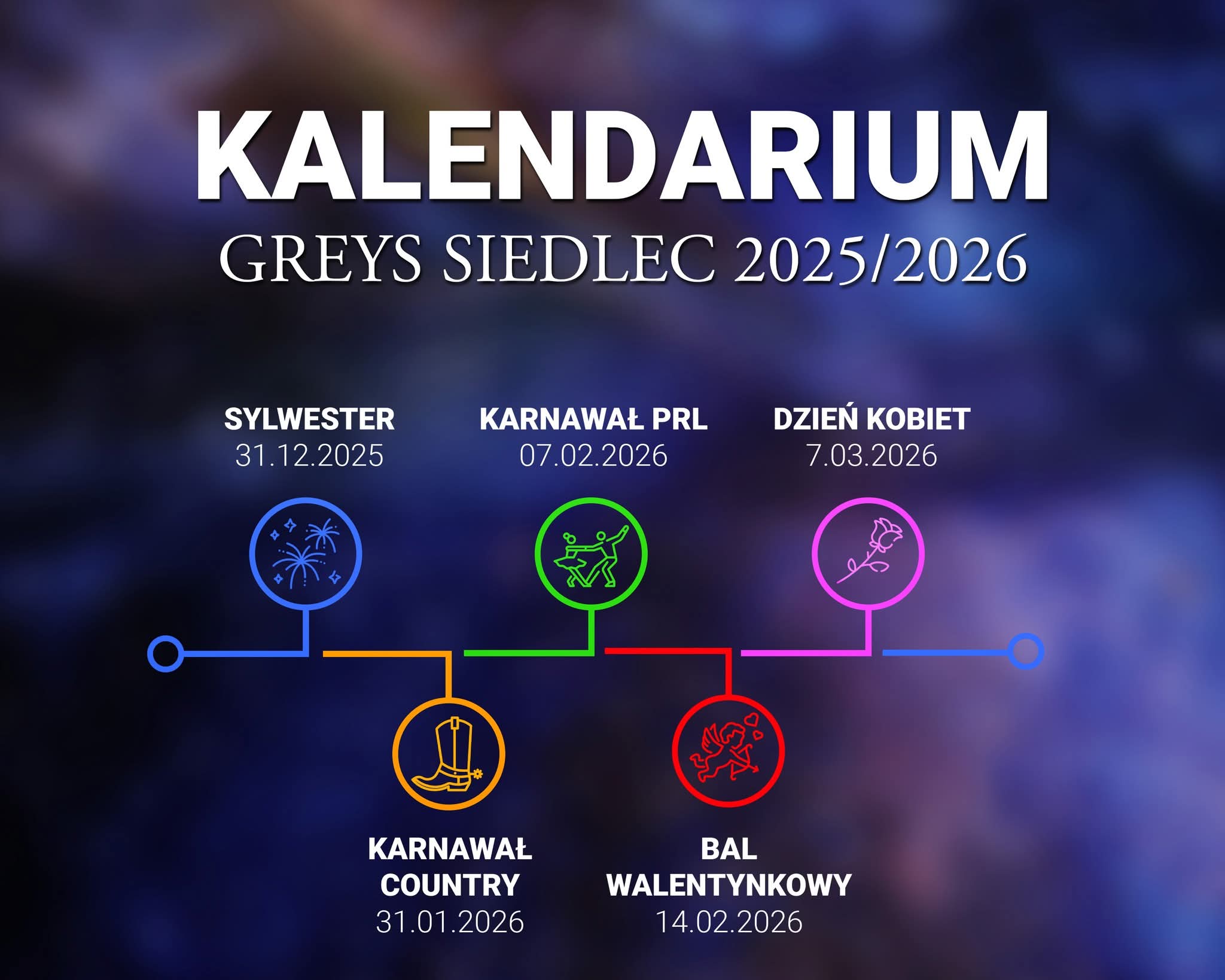 Jeśli chcesz spędzić najbardziej imprezowy czas w roku z nami-zapraszamy do rezerwacji biletów! Greys Siedlec: 618180442, godz: 10-18 Greys Polonia: 64354030, godz: 10-18