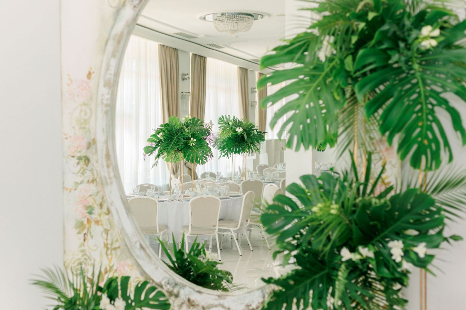 Dzięki temu sala stanowi idealne tło do eleganckich dekoracji, świec, kwiatów i stylu glamour.